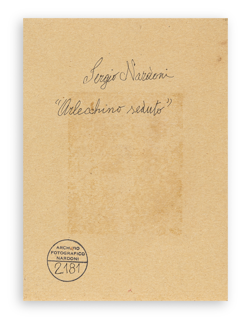 Firma, titolo e timbro dell'Archivio Fotografico Sergio Nardoni al retro