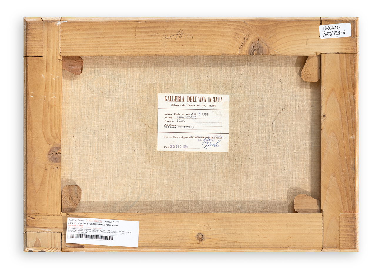 Etichetta della Galleria Annunciata (MI), con caratteristiche tecniche dell'opera, al retro