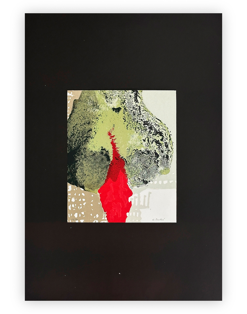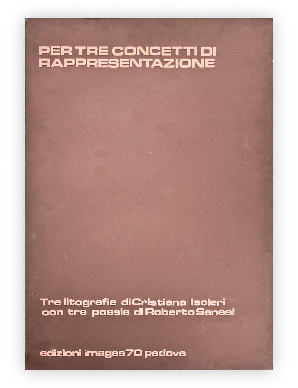 Cartella contenente 3 poesie di Roberto Sanesi illustrate da 3 litografie di Cristiana Isoleri, ciascuna recante firma e numerazione (Esemplare 79/90) a matita al fronte