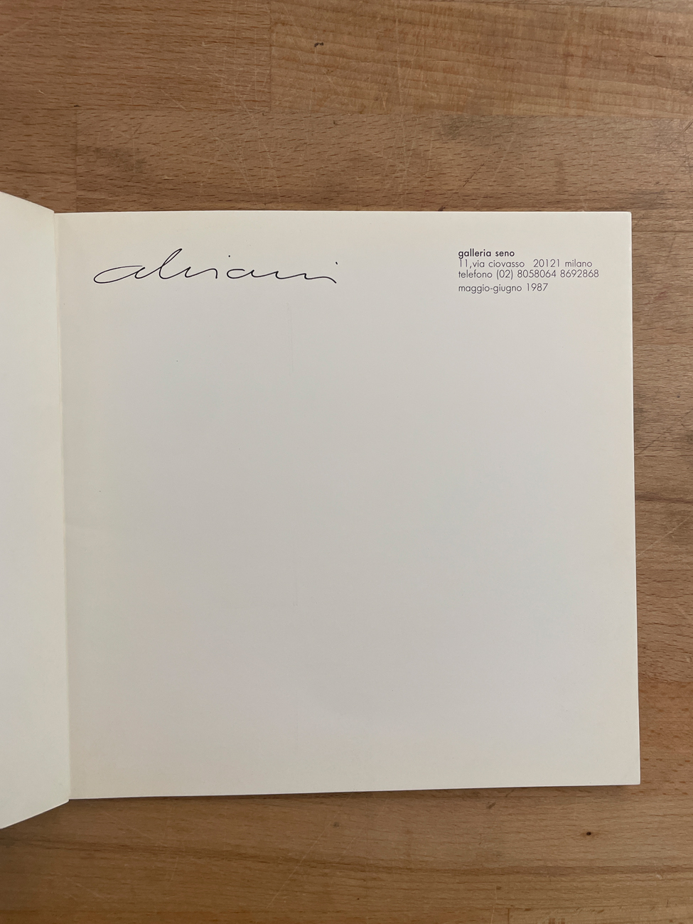 Raro catalogo riccamente illustrato edito in occasione dell'esposizione tenutasi presso Galleria Seno, Milano, 1987