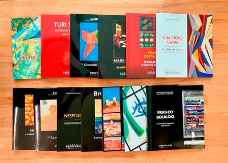Interessante lotto di 13 cataloghi editi dall Galleria Ferrarin, Legnago, relativi ai seguenti artisti: Achille Perilli, Mark Kostabi, Franco Costalonga, Luca Linari, Paola Bernardi, Gualtiero Nativi, Bruno Saetti, Virgilio Guidi, Salvatore Magazzini, Franco Beraldo, Ugo Nespolo, Turi Simeti e Bruno Ceccobelli