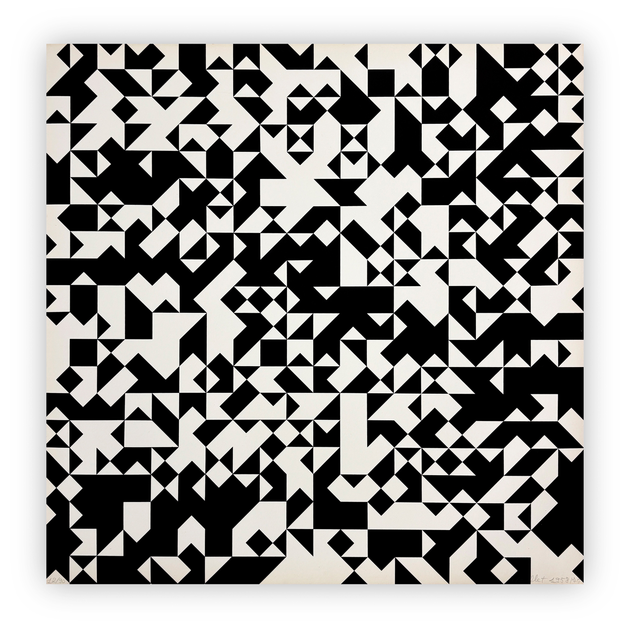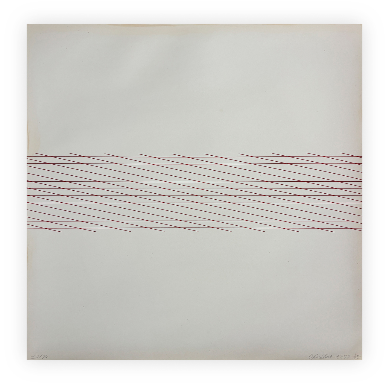 Portfolio di 10 serigrafie di François Morellet su carta rosaspina Fabriano, tratte da 10 opere prodotte tra il 1952 ed il 1961, ciascuna recante firma e numerazione (Esemplare 12/90) a matita al fronte