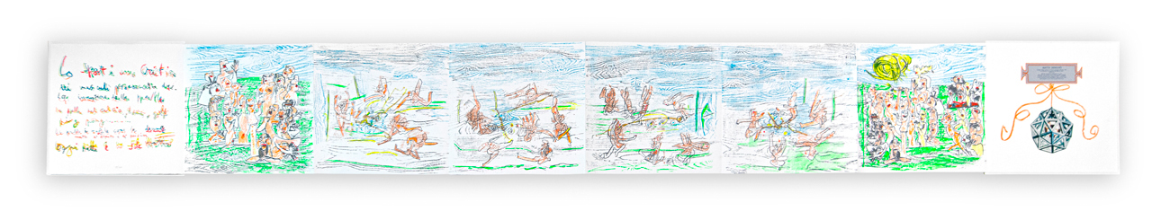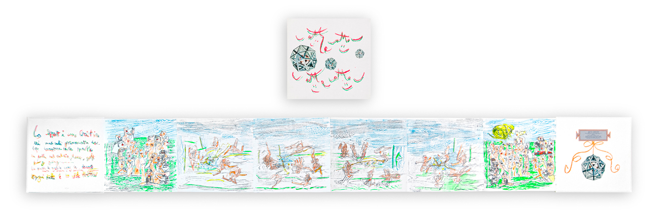 Leporello cm 58x60 (formato chiuso); cm 58x580 (massima apertura)