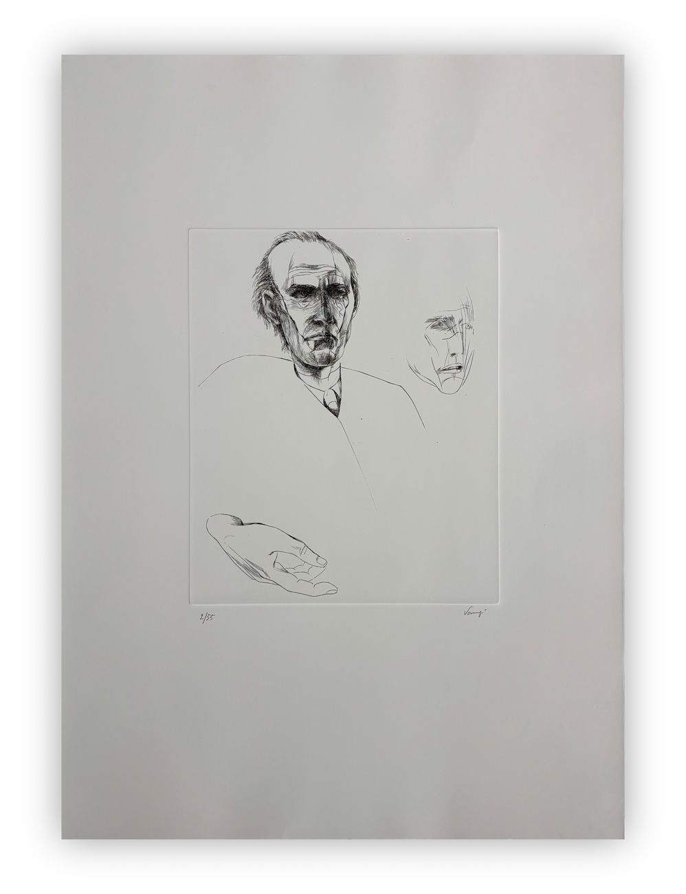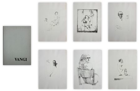 Cartella contenente testo di presentazione di Pier Carlo Santini e sei incisioni a bulino di Giuliano Vangi, ciascuna recante firma e numerazione (Esemplari 2/55) a matita al fronte