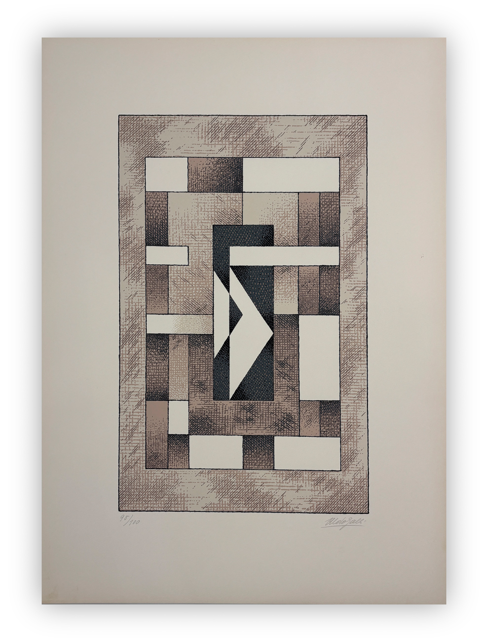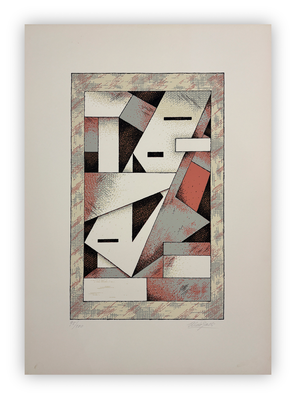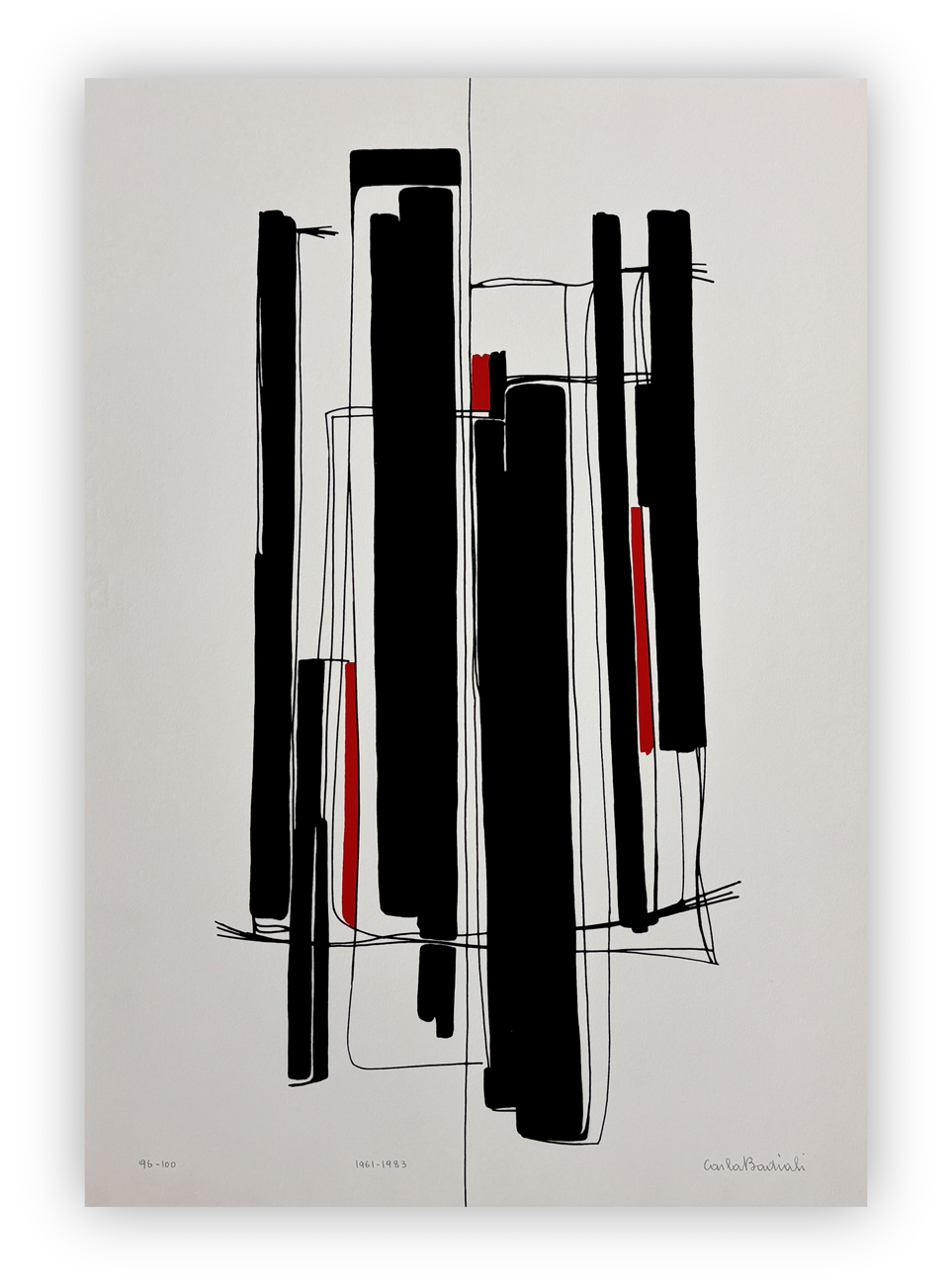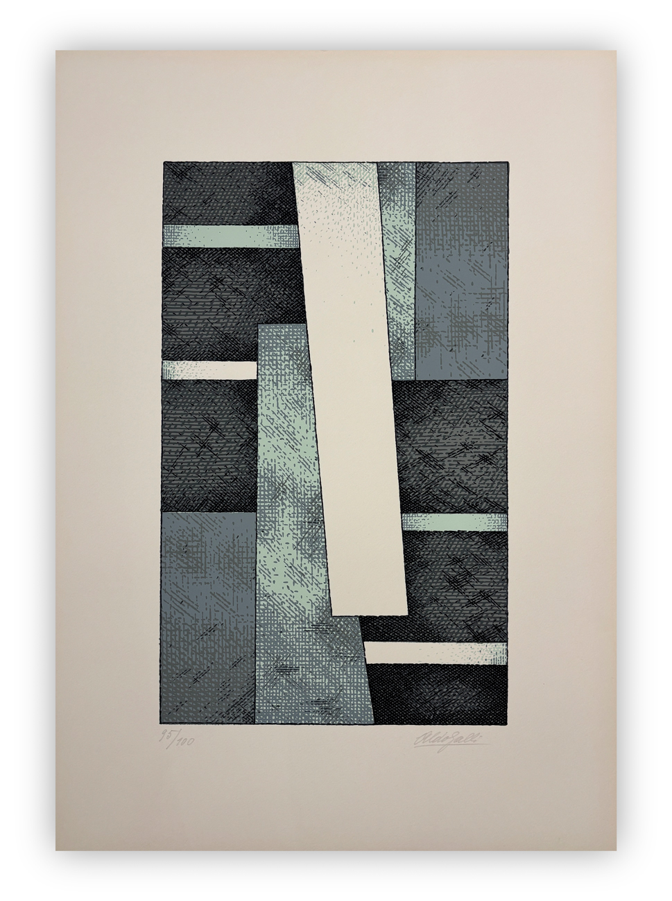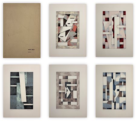 cartella contenente 5 serigrafie di Aldo Galli ed una presentazione di Alberto Longatti, ciascuna recante firma e numerazione (Esemplare 95/100) a matita al fronte