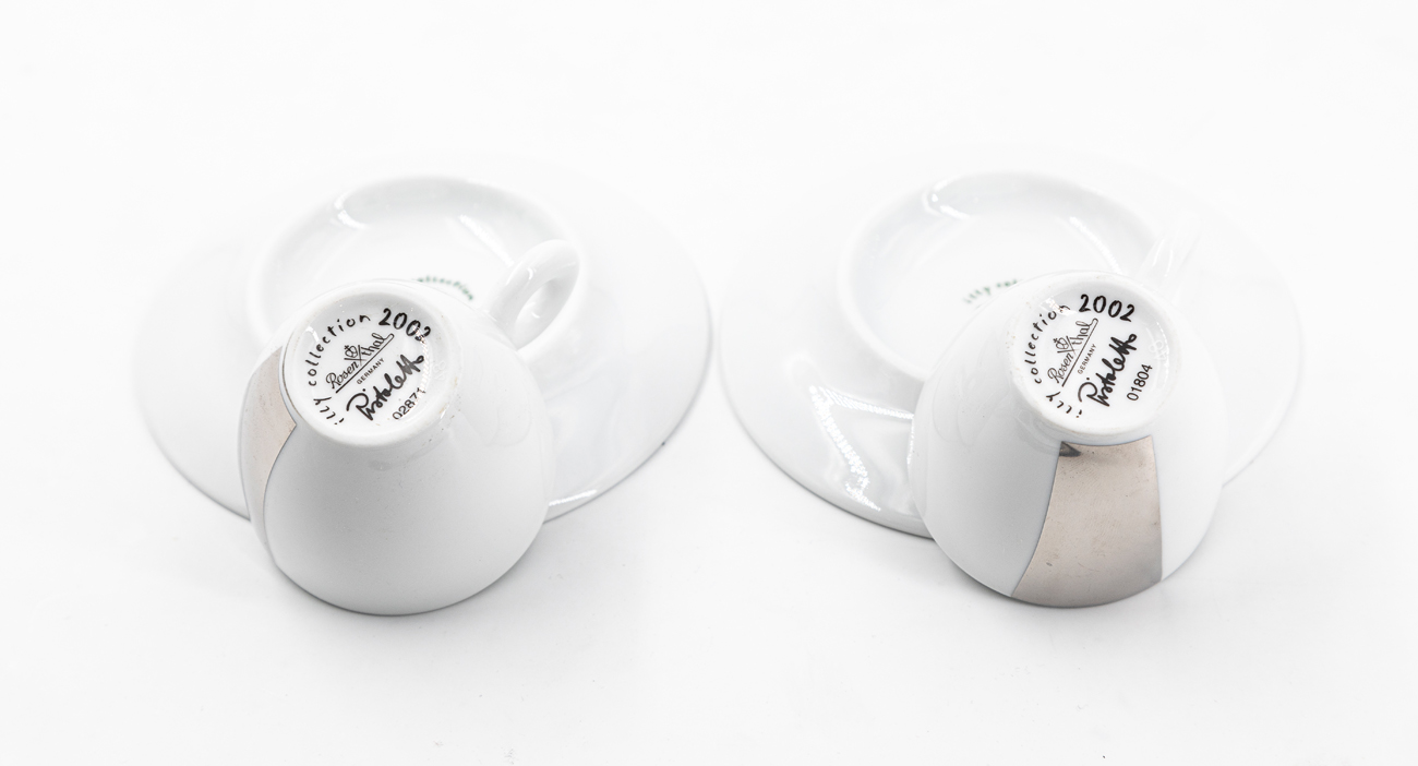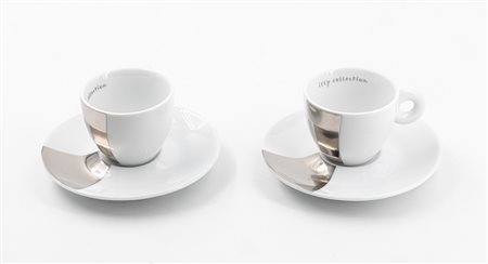 Set composto da 2 piattini e 2 tazzine in ceramica serigrafata, edizione realizzata per la serie Art Collection di Illy