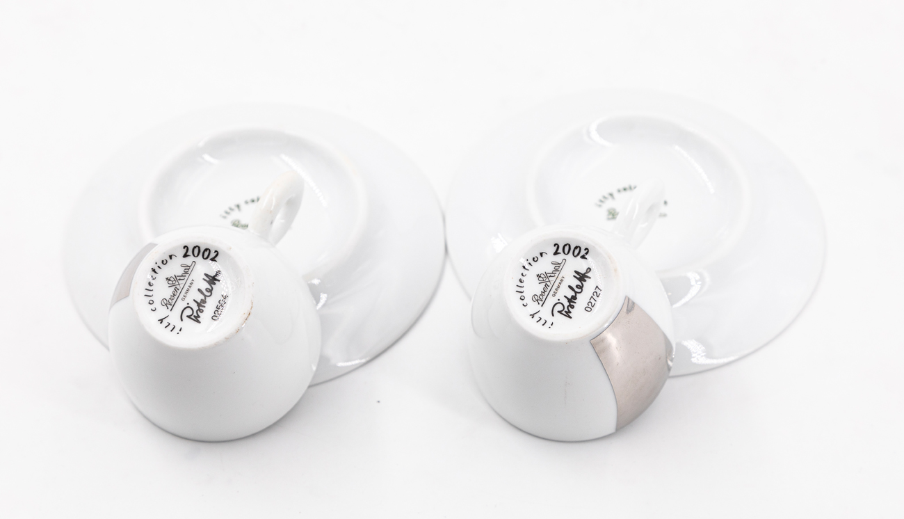 Set composto da 2 piattini e 2 tazzine in ceramica serigrafata, edizione realizzata per la serie Art Collection di Illy