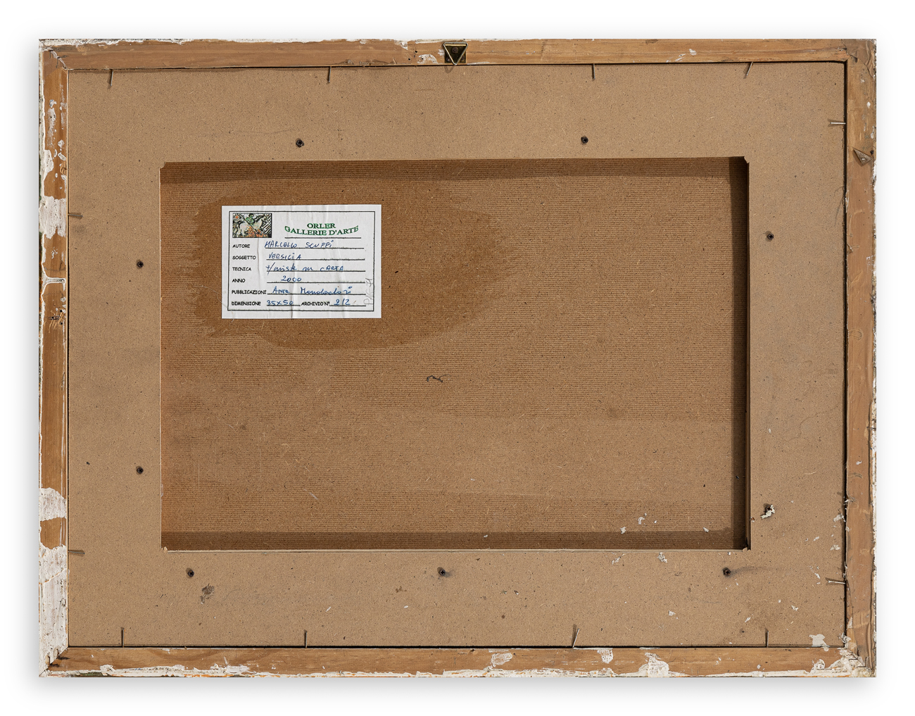 Etichetta della Galleria d'Arte Orler (VE) al retro del cartone protettivo