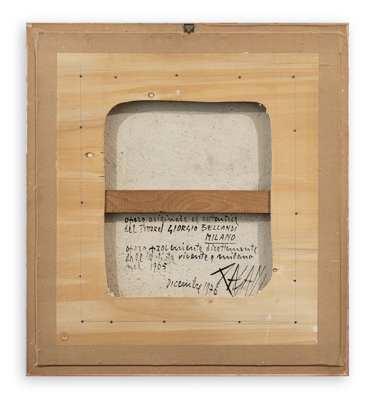 Firma e dichiarazione di autenticità e provenienza del gallerista Pagani al retro