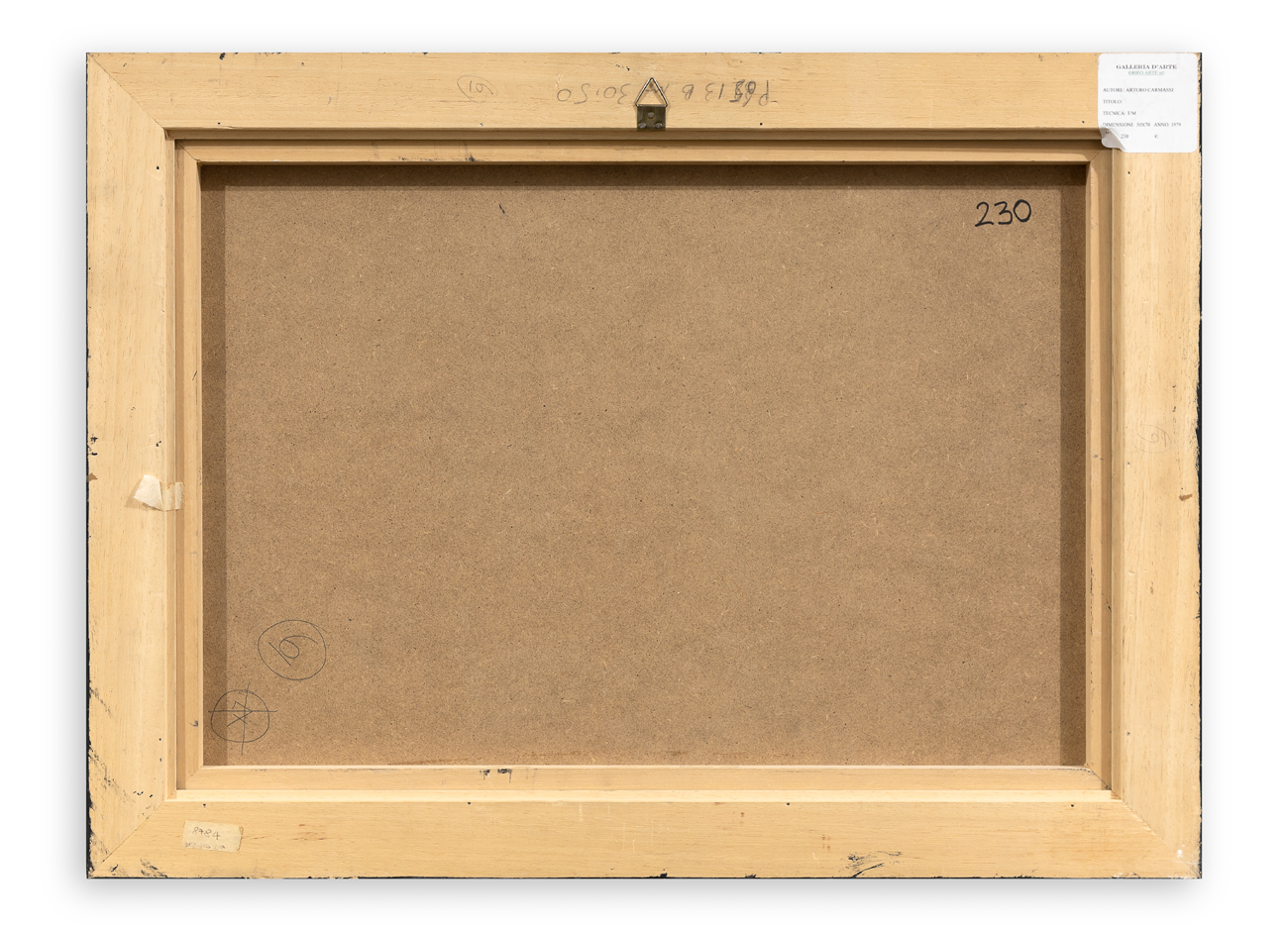 Etichetta della Galleria Grifo Arte (Cn) al retro del cartone protettivo