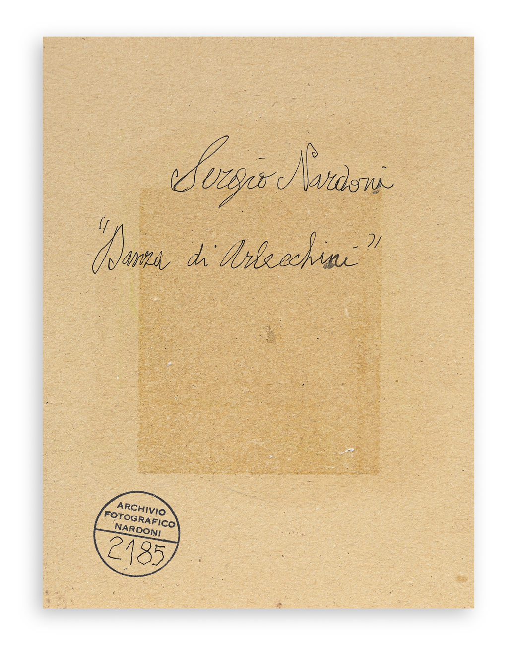 Firma, titolo e timbro dell'Archivio Fotografico Sergio Nardoni al retro