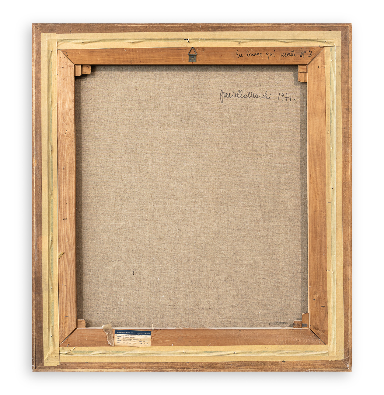 Etichetta della 'Baukunst - Köln', con caratteristiche tecniche dell'opera al retro