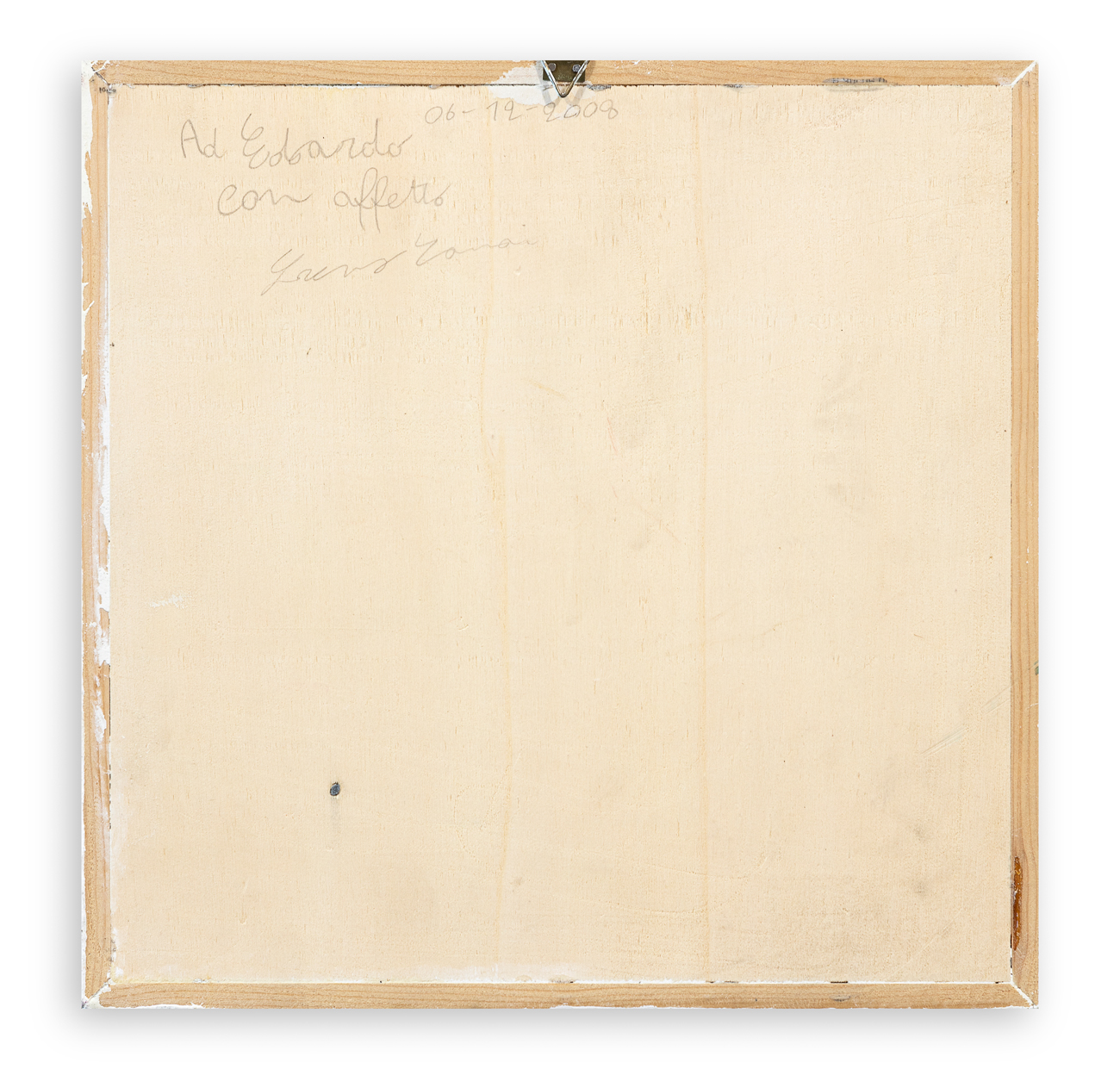 Firma e dedica ad personam datata 06/12/2008 al retro della tavola protettiva