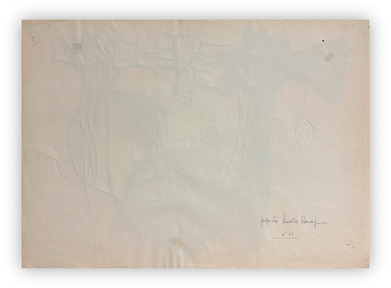 Iscrizione 'Proprietà Lunella Romagnoni' al retro