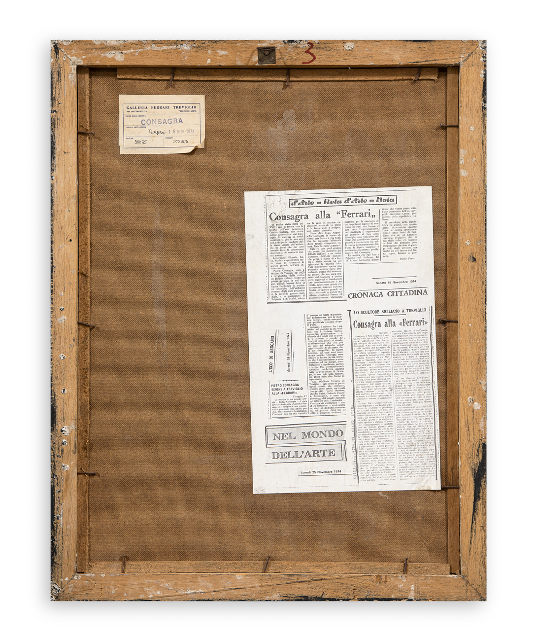 Etichetta della Galleria Ferrari (BG), con caratteristiche tecniche dell'opera, al retro