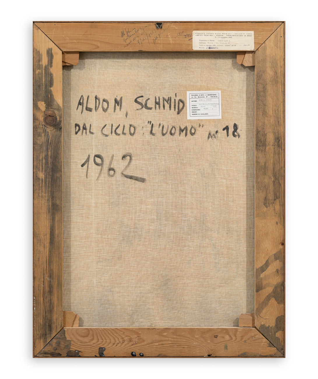 Etichetta della Galleria d'Arte L'Argentario (TN), con caratteristiche tecniche dell'opera, al retro
