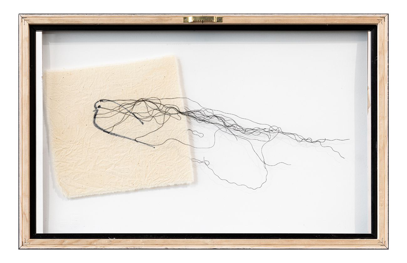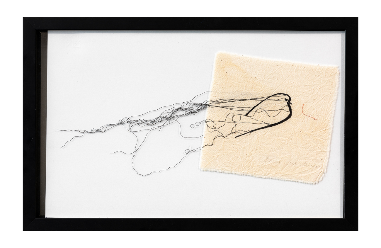 Tecnica mista, stoffa, filo e inchiostro