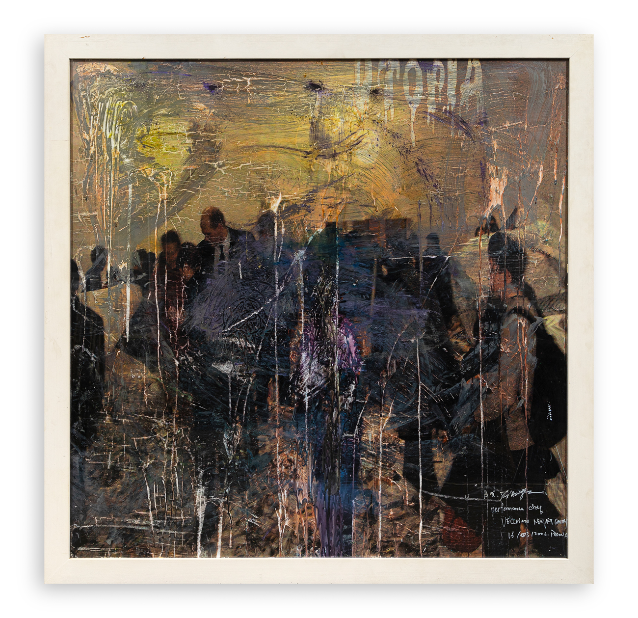 Firma e iscrizione 'Performance chez Vecchiato New Art Galleries - 16/03/2006 - Padova' al fronte