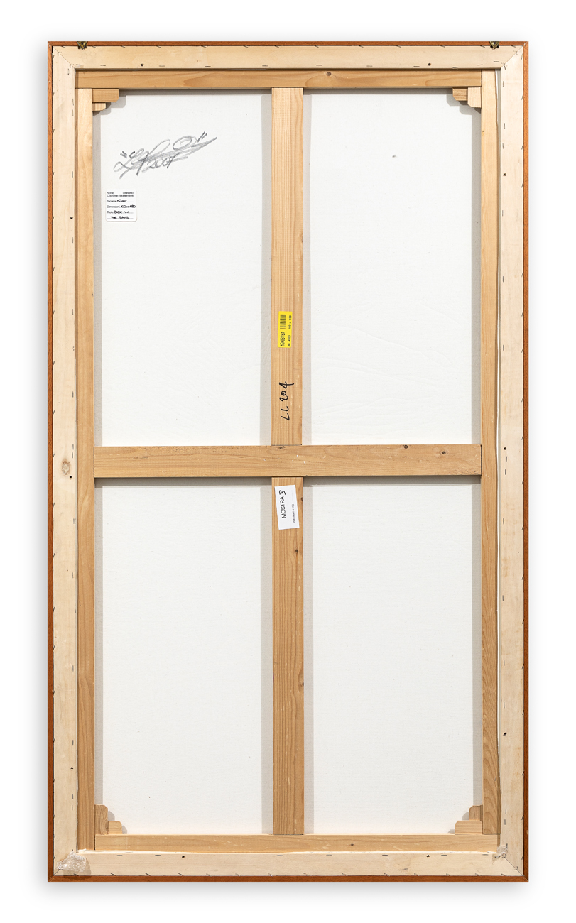 Firma ed etichetta dell'Artista recante caratteristiche tecniche dell'opera al retro