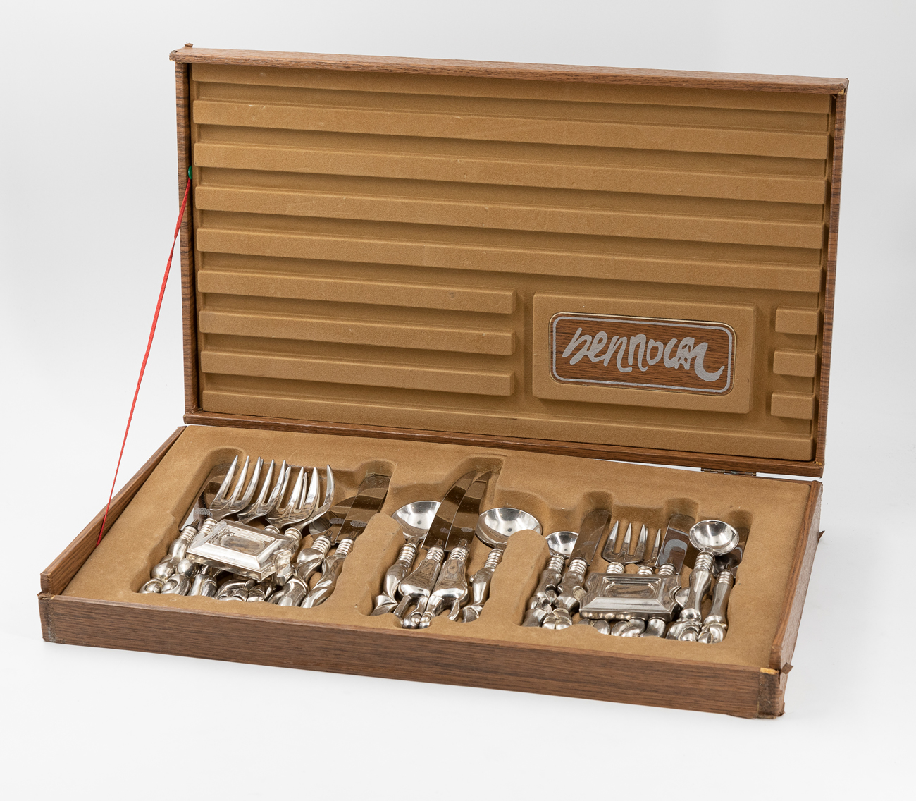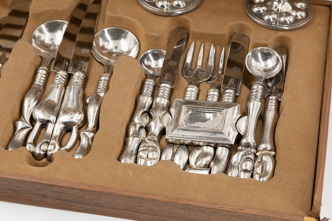 La posateria era originariamente composta da un altro cofanetto contenente 5 posate da portata e un anello