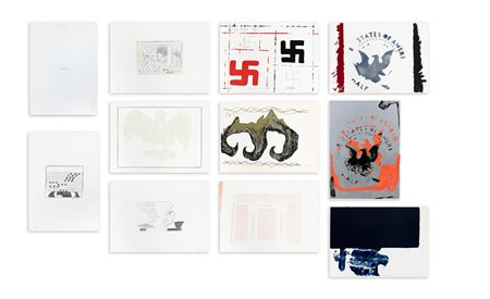 Cartella contenente colophon di presentazione e 10 litografie su cartoncino, ciascuna recante firma e numerazione (Esemplari 41/120) a matita al fronte e timbro a secco dell'Editore