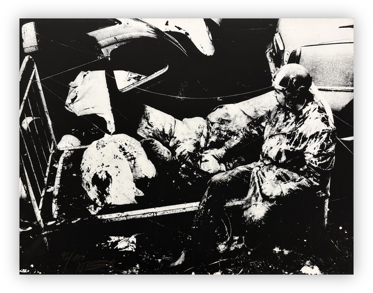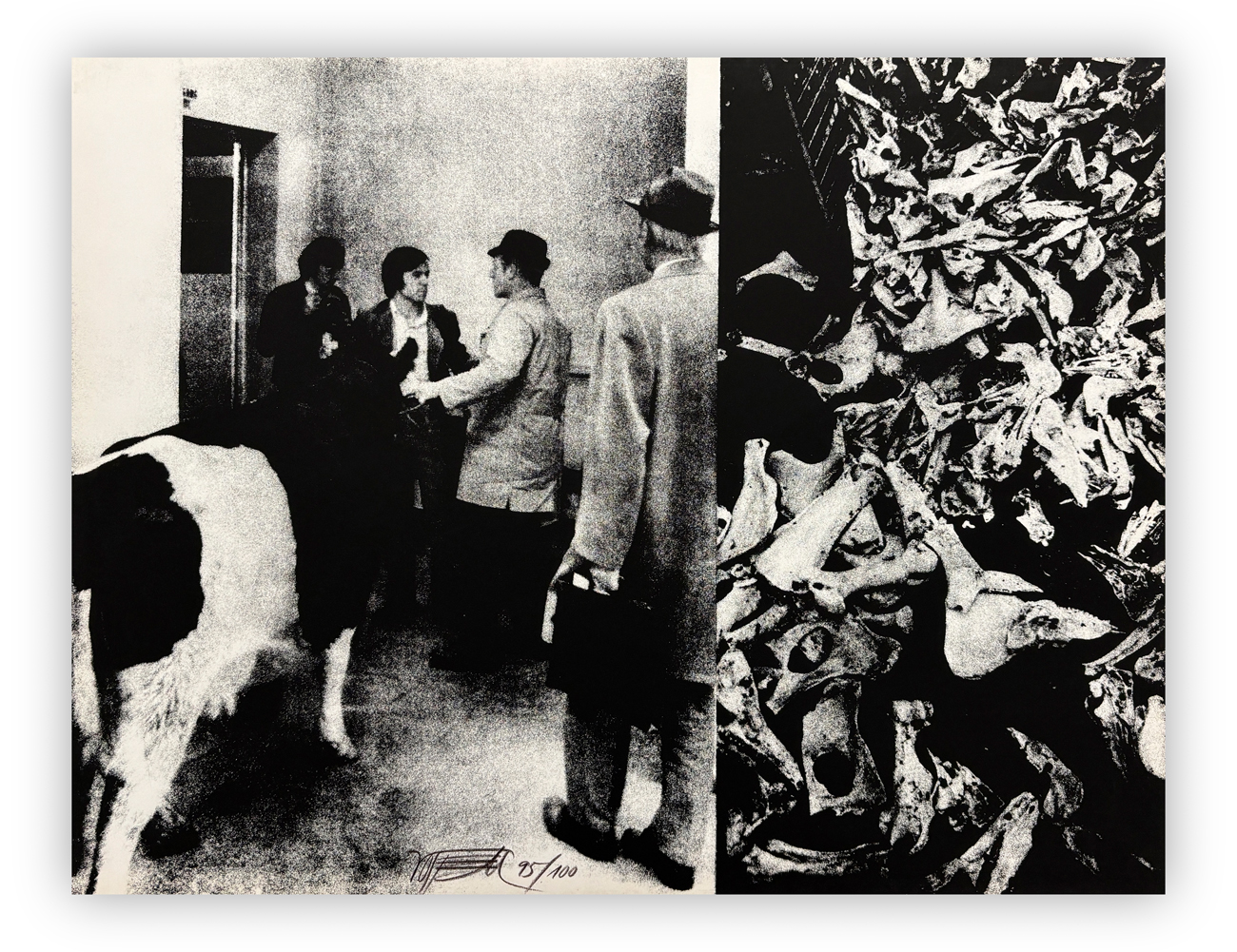 Valigetta contenente 10 litografie in bianco e nero su cartone e 11 serigrafie su cartone, ciascuna recante firma e numerazione (Esemplare 95/100) a matita al fronte