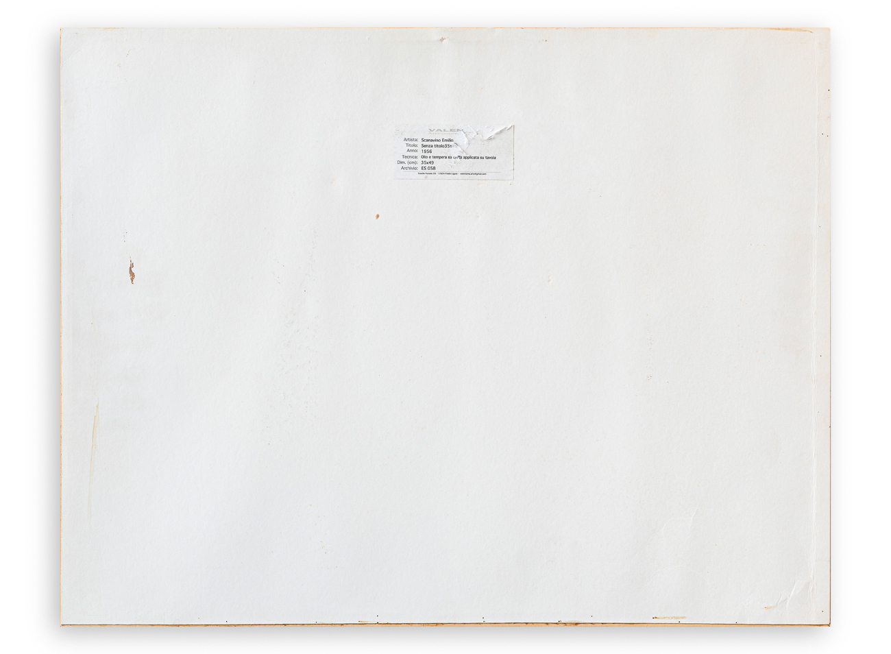 Etichetta della Galleria Valente Arte Contemporanea (SV) al retro