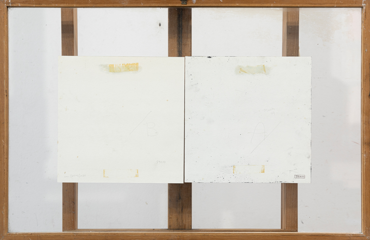 L'opera presenta due evidente tracce di traspirazione di nastro al margine superiore di ciascun cartoncino