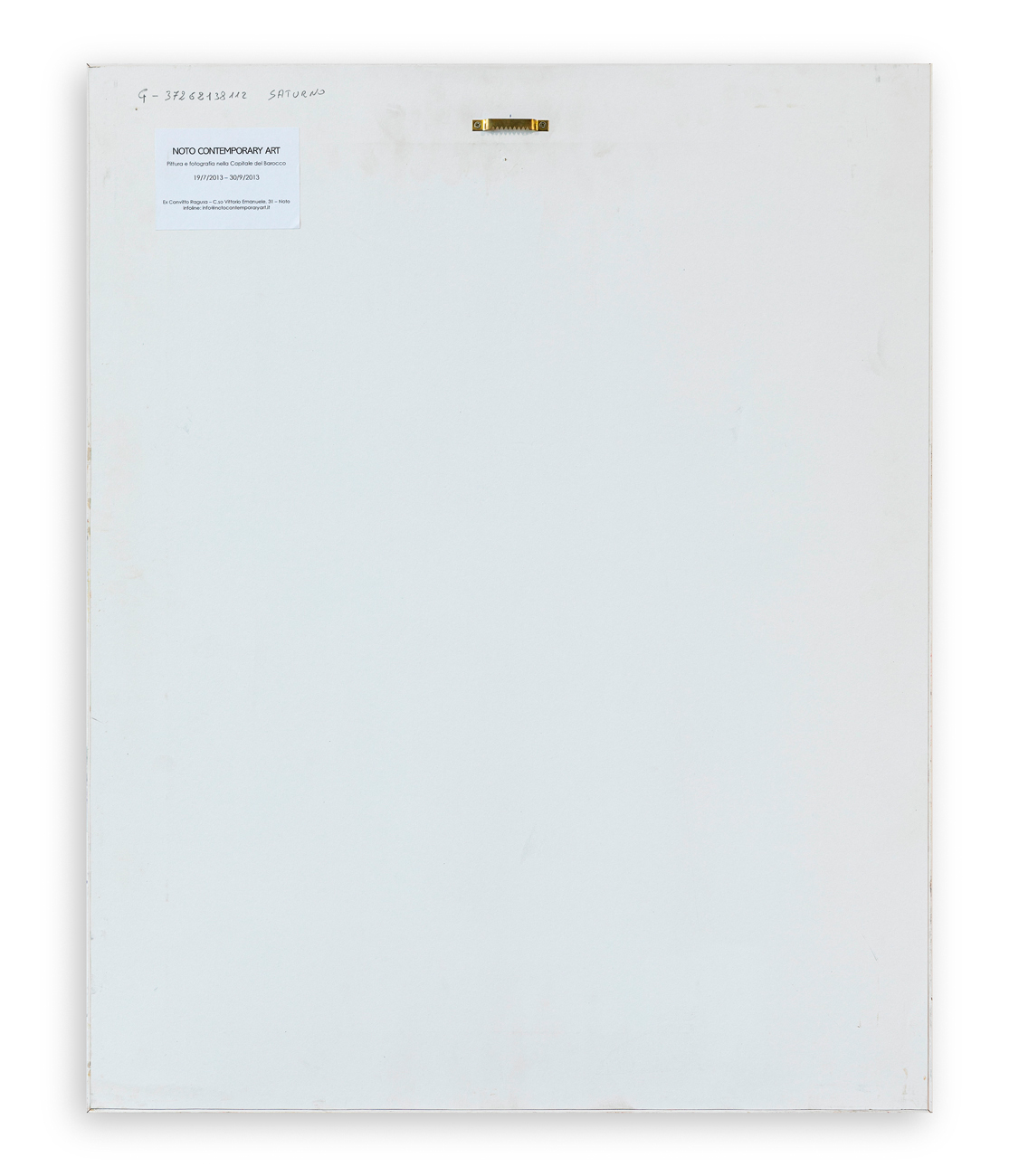 Etichetta della Noto Contemporary Art (RG) al retro del cartoncino protettivo