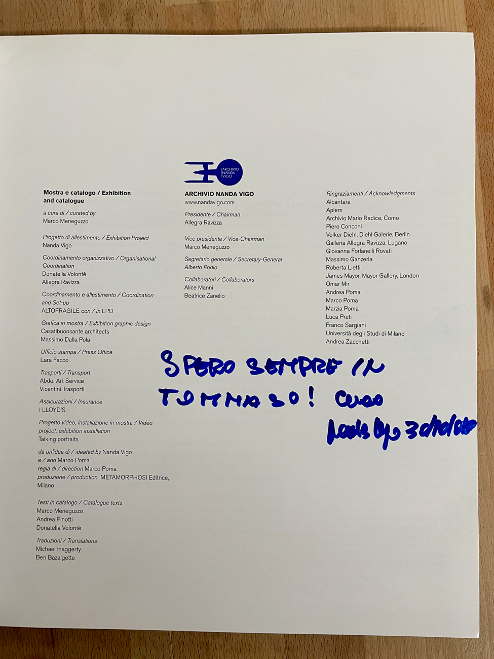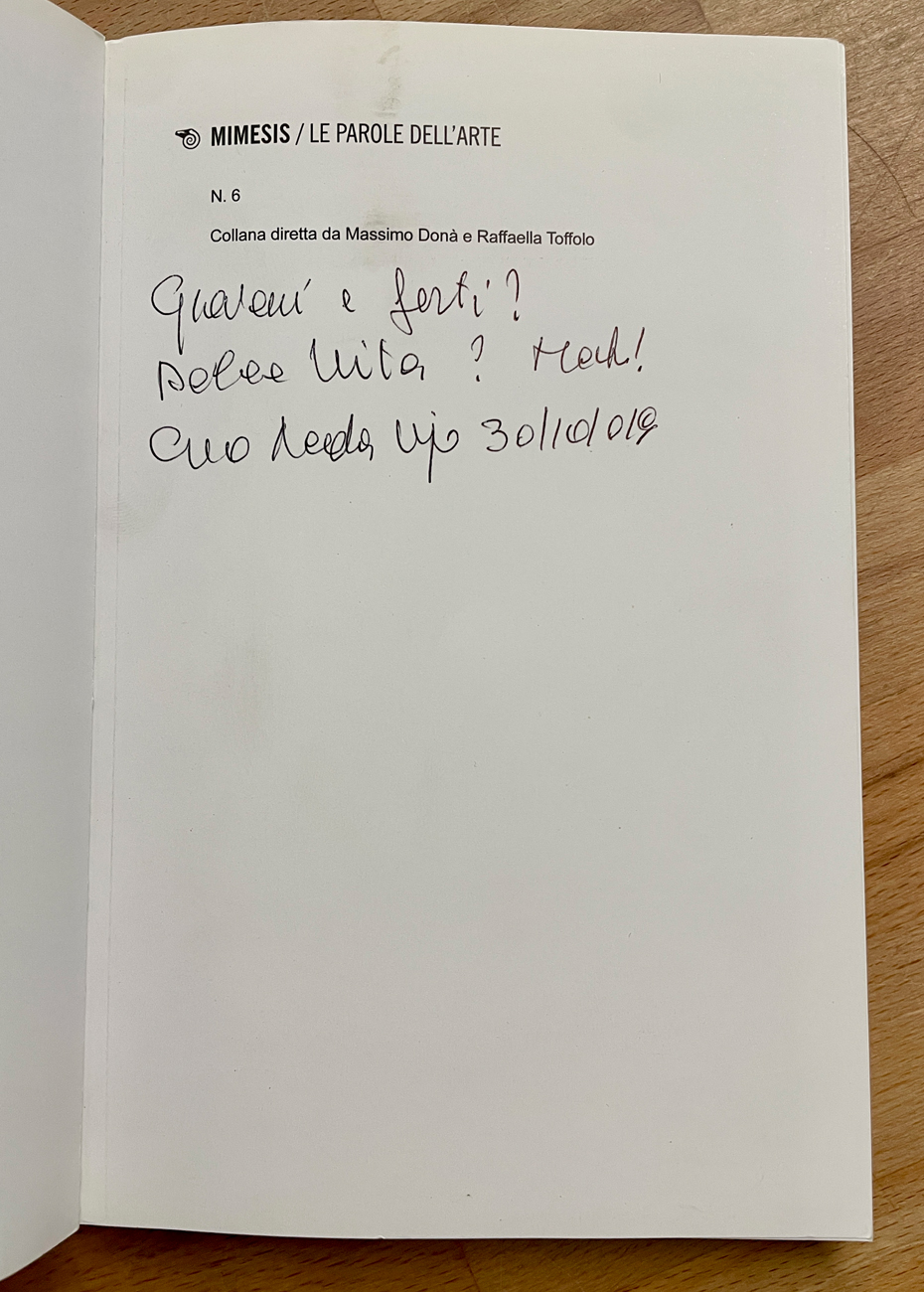 Reca dedica e firma dell'Artista a pennarello blu all'interno