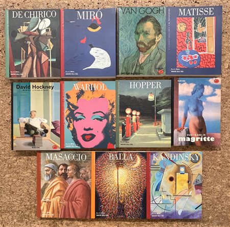 Lotto unico di 11 cataloghi relativi ai protagonisti della storia dell'arte editi dal Corriere della Sera e da Rusconi Arte: Masaccio, De Chirico, Balla, Matisse, Mirò, Van Gogh, Kandinsky, Magritte, Hopper, Warhol, David Hockney