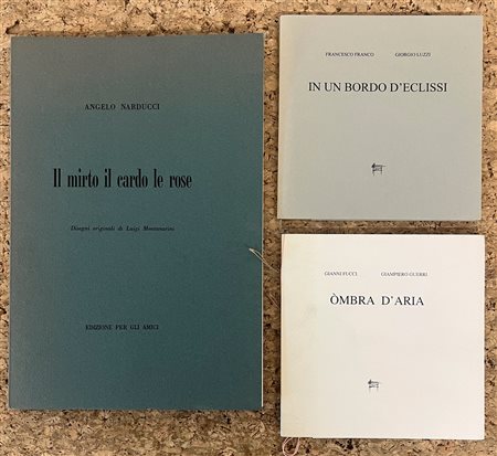Edizione d'arte contenente 3 poesie di Giorgio Luzzi illustrate da una incisione di Francesco Franco recante firma e numerazione (Esemplare 63/70) a matita al fronte