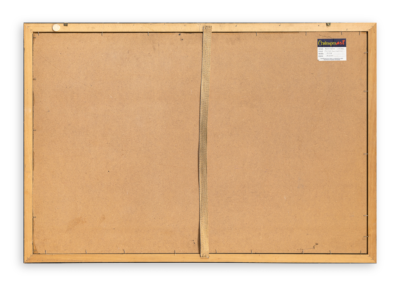Etichetta della Galleria Contemporart (MO), recante caratteristiche tecniche dell'opera, al retro del cartone protettivo