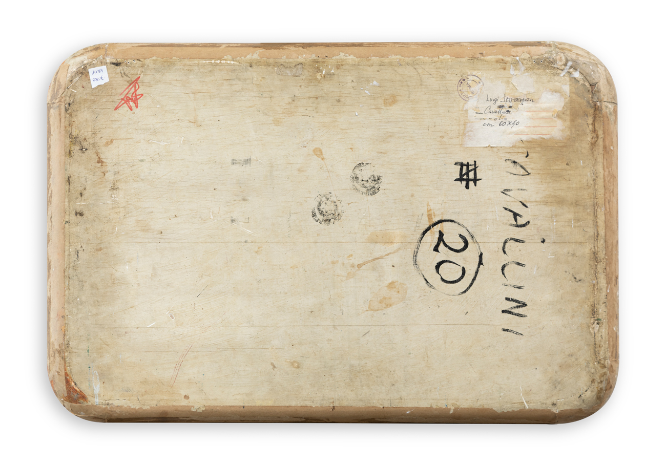 Etichetta e timbro della Galleria La Nuova Pesa (RM) sotto la base