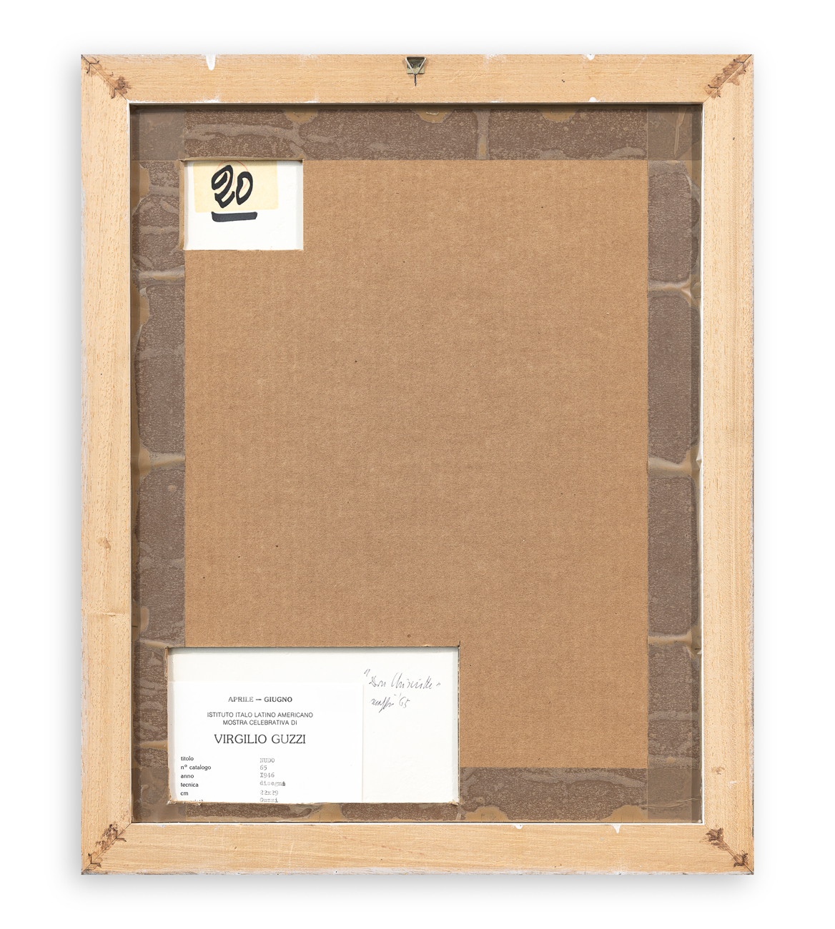Etichetta dell'esposizione 'Mostra celebrativa di Virgilio Guzzi' al retro