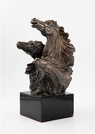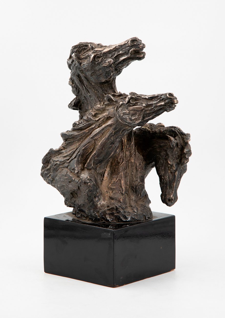 Scultura in bronzo poggiante su base in marmo nero