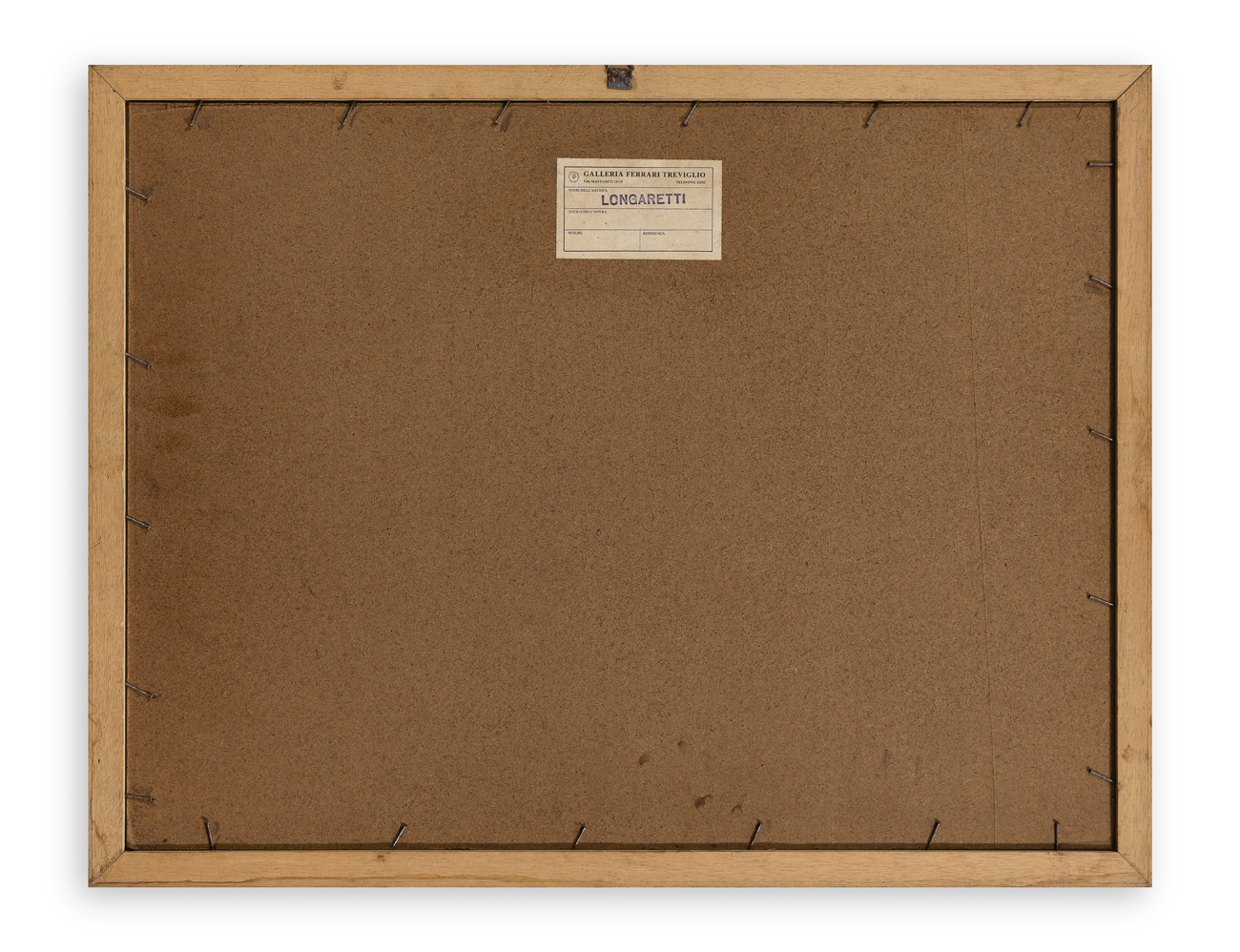 Etichetta della Galleria Ferrari (BG) al retro della tavola protettiva
