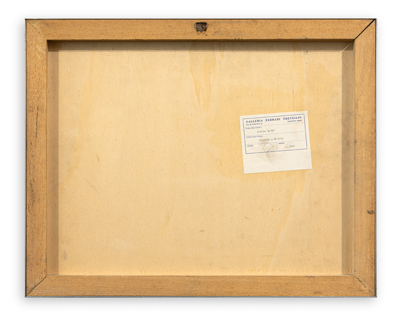 Etichetta della Galleria Ferrari (BG) al retro della tavola protettiva