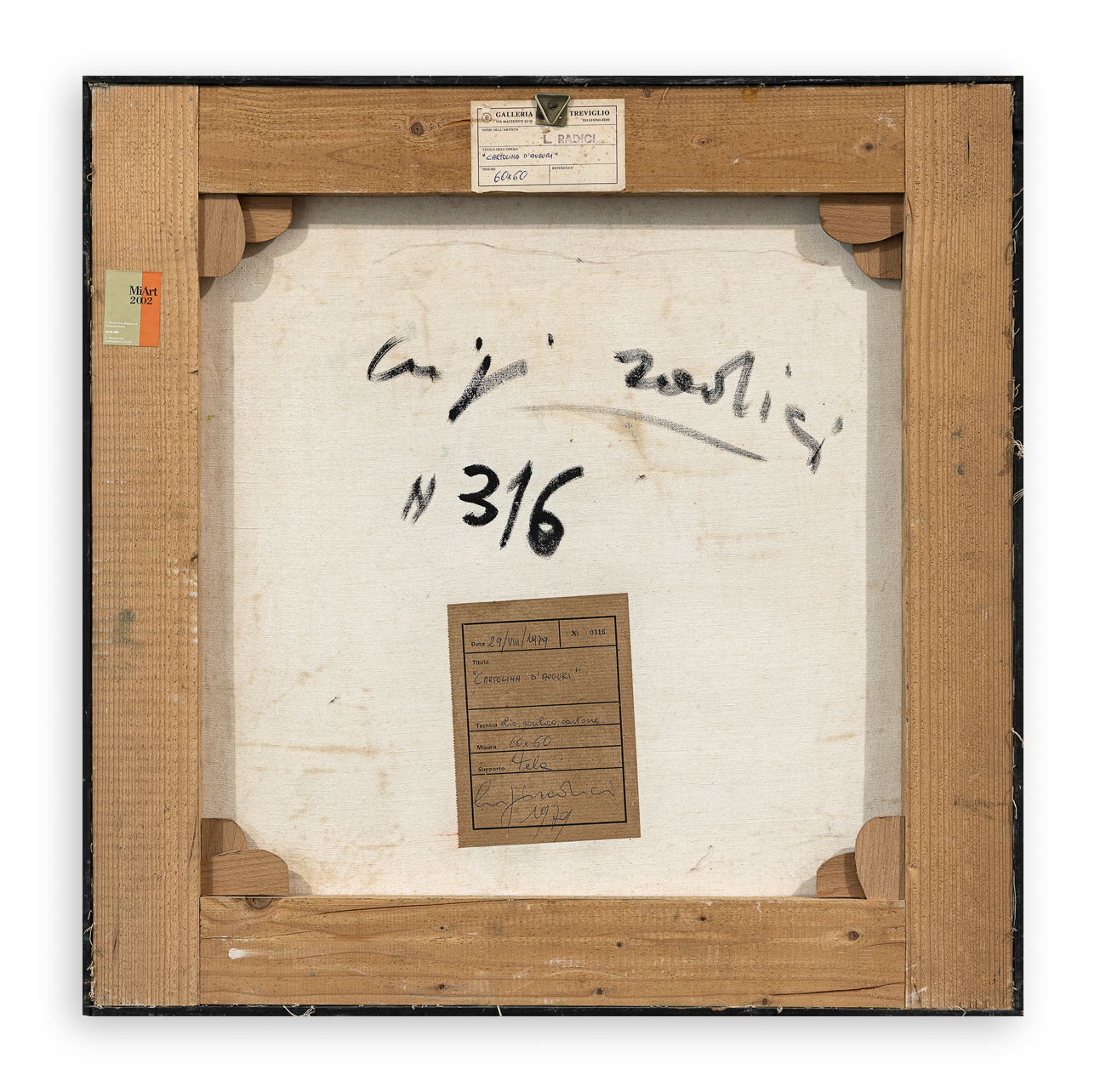 Etichetta dell'Artista con firma e caratteristiche tecniche dell'opera al retro