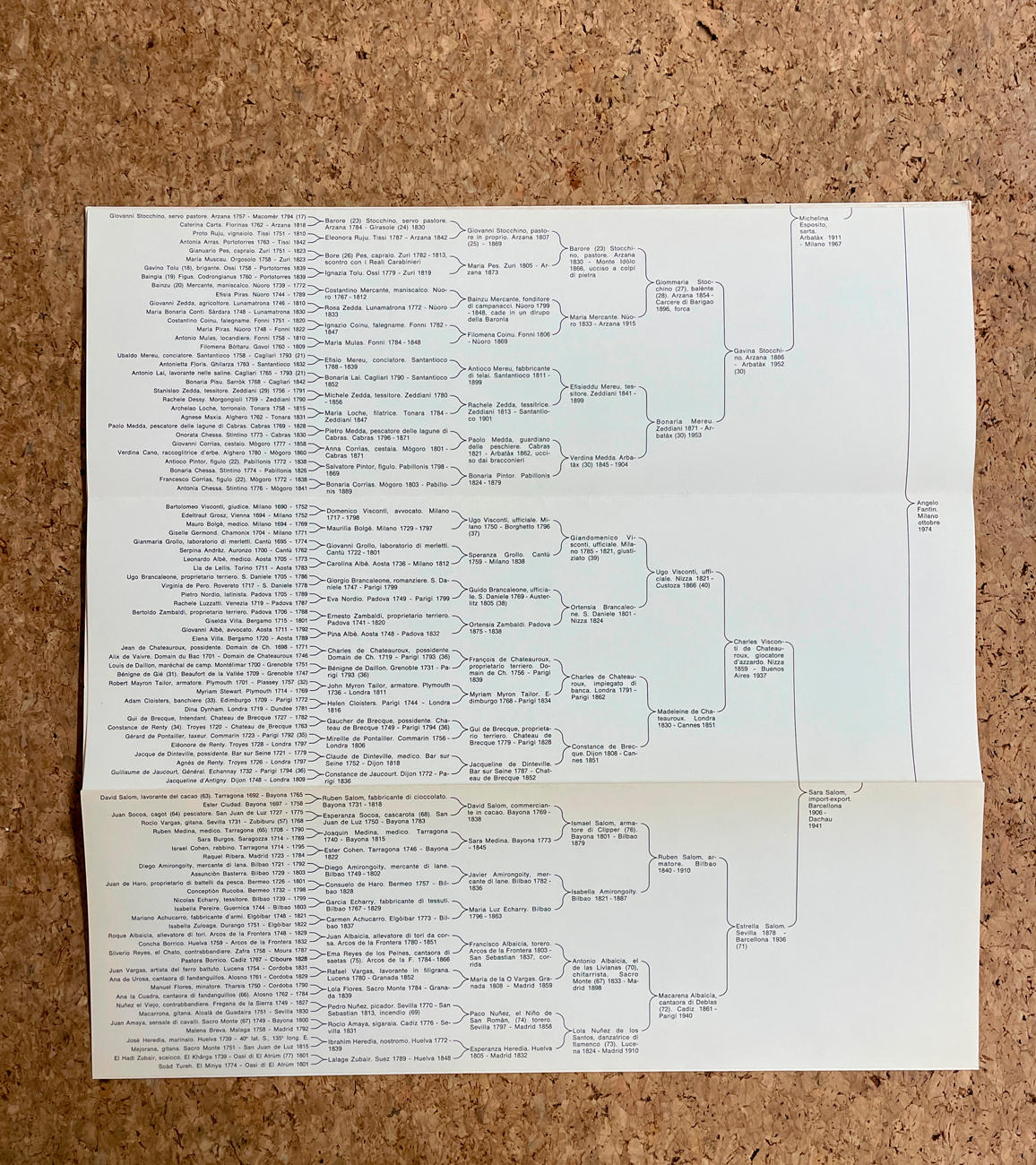 'Uno dei più straordinari libri italiani degli ultimi anni'. Così si esprimeva Italo Calvino, nel 1975, in un articolo sul Corriere della Sera in cui parlava di questo libro. 'Questo è un vecchio libro che parla di persone. È un "leporello" che si srotola, su cui sono riportati in parentesi graffe, andando indietro nel tempo, i nomi degli antenati di un certo Angelo Fantin, nato a Milano nel 1974. Si crea così una catena, che risale dai genitori ai nonni ai bisnonni e così via per trecento anni, che diventa sempre più vasta man mano che si va indietro. E ognuno, nato magari nei luoghi più lontani, fa nascere storie e destini, combinandosi inconsapevolmente con gli altri e con altri ancora non scritti. Ognuno è vissuto ed è morto, e la sua memoria e il suo ruolo sono stati dimenticati da chi lo ha seguito e ignorati da chi lo precedeva'.