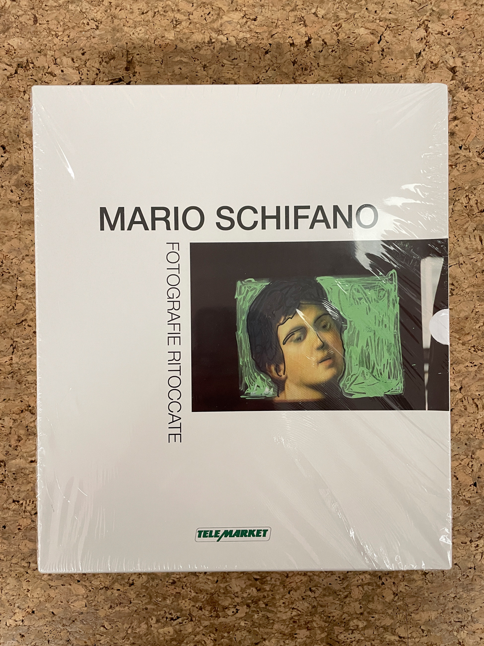 Cofanetto contenente due cataloghi riccamente illustrati inerenti le celebri fotografie ritoccate a pennarelli e smalti di Mario Schifano