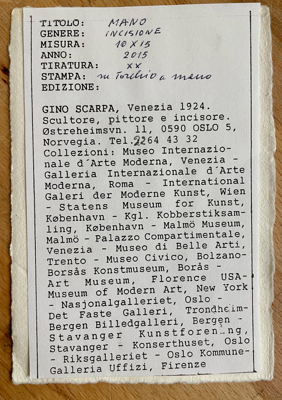 Si allegano due grafiche relative all'Artista Gino Scarpa e Alessandro Montalbano, entrambe rispettivamente recanti firma e numerazione al fronte