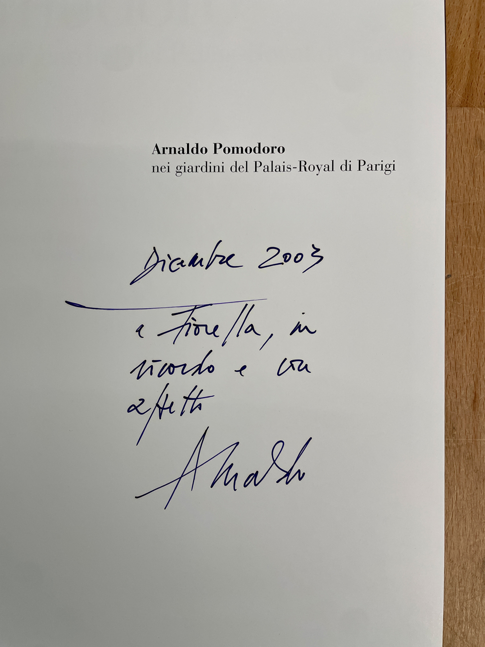 Reca firma e dedica ad personam datata Dicembre 2003 a pennarello all'interno