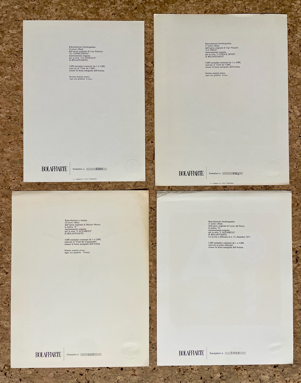 EDIZIONI BOLAFFIARTE (NESPOLO, DEL PEZZO, RABUZIN E MARINI) - Lotto unico di 4 fotolitografie