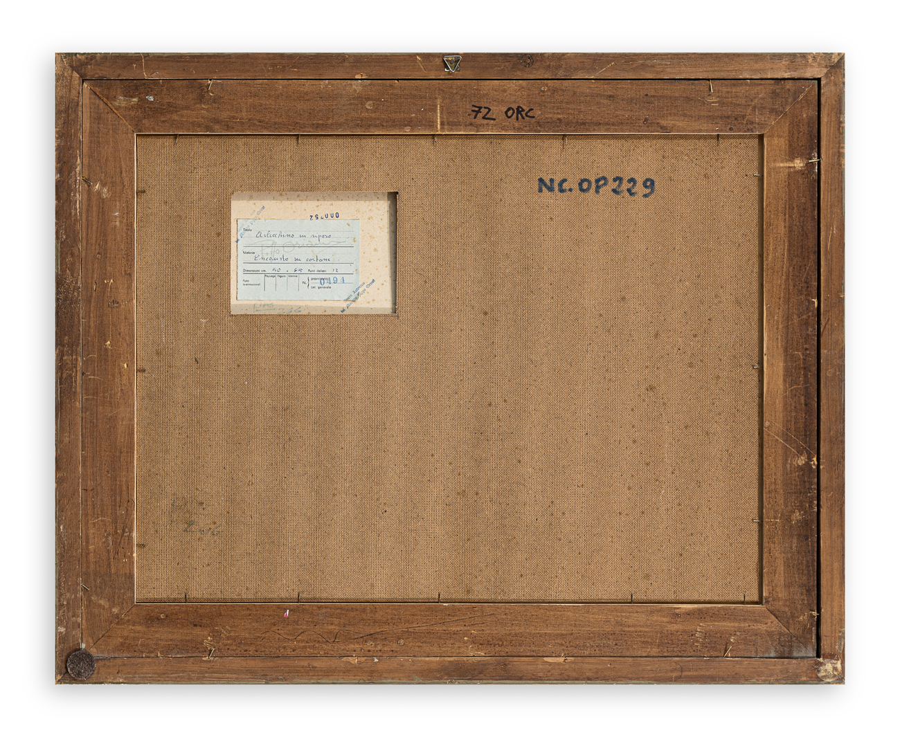 Etichetta dell'Artista con numero di repertorio provvisorio al retro