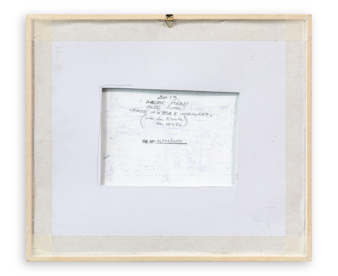 Firma, titolo, tecnica, misure e numero di Archivio al retro