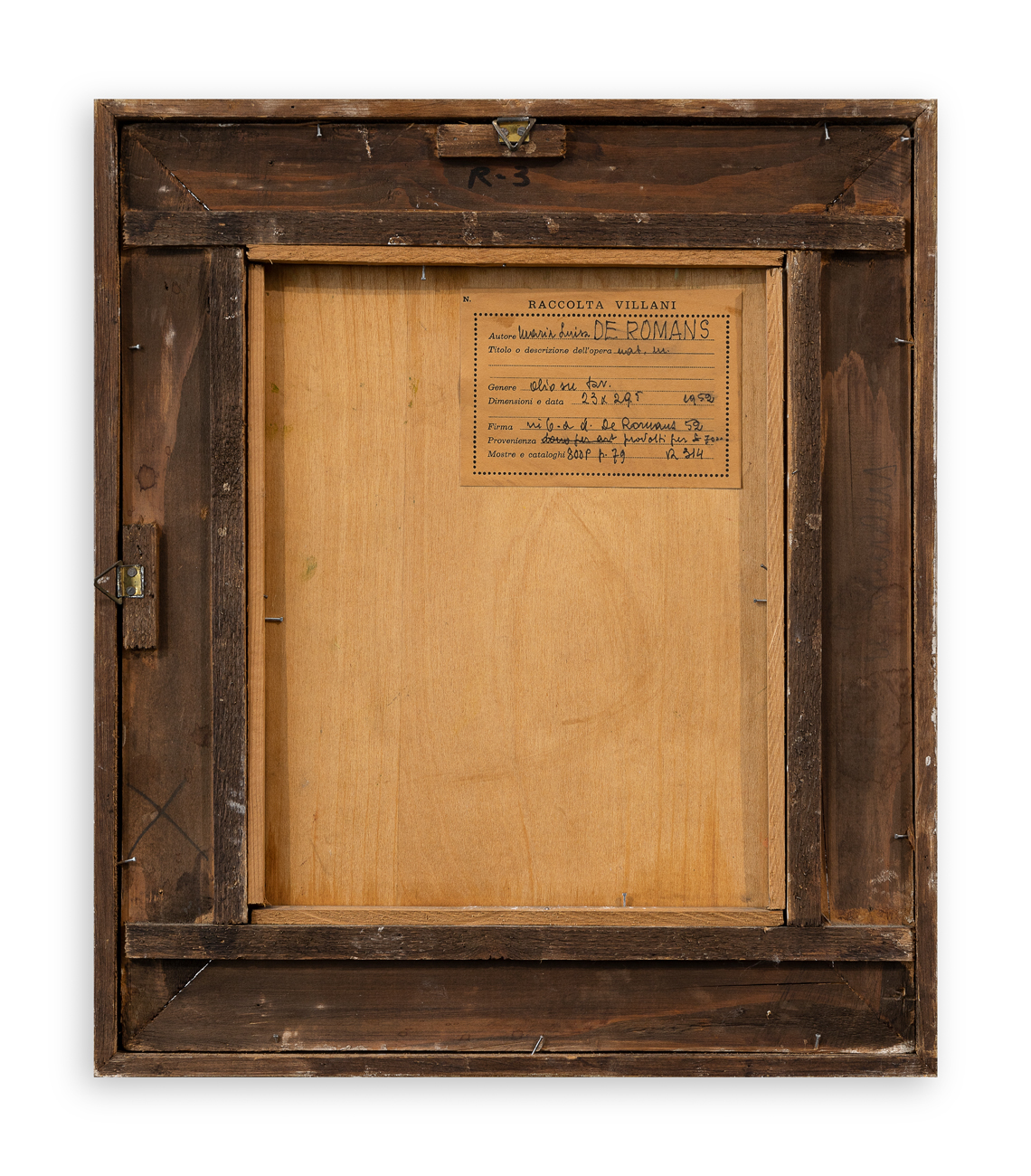 Etichetta della Raccolta Villani, recante caratteristiche tecniche dell'opera, al retro