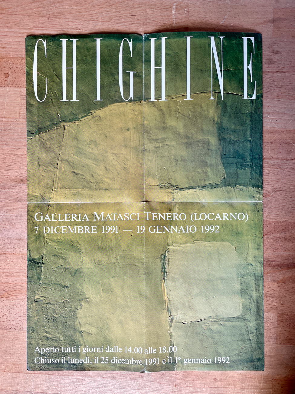 Si allega una locandina edita in occasione dell'esposizione personale di Alfredo Chighine tenutasi presso Galleria Matasci, Tenero, 1991/1992