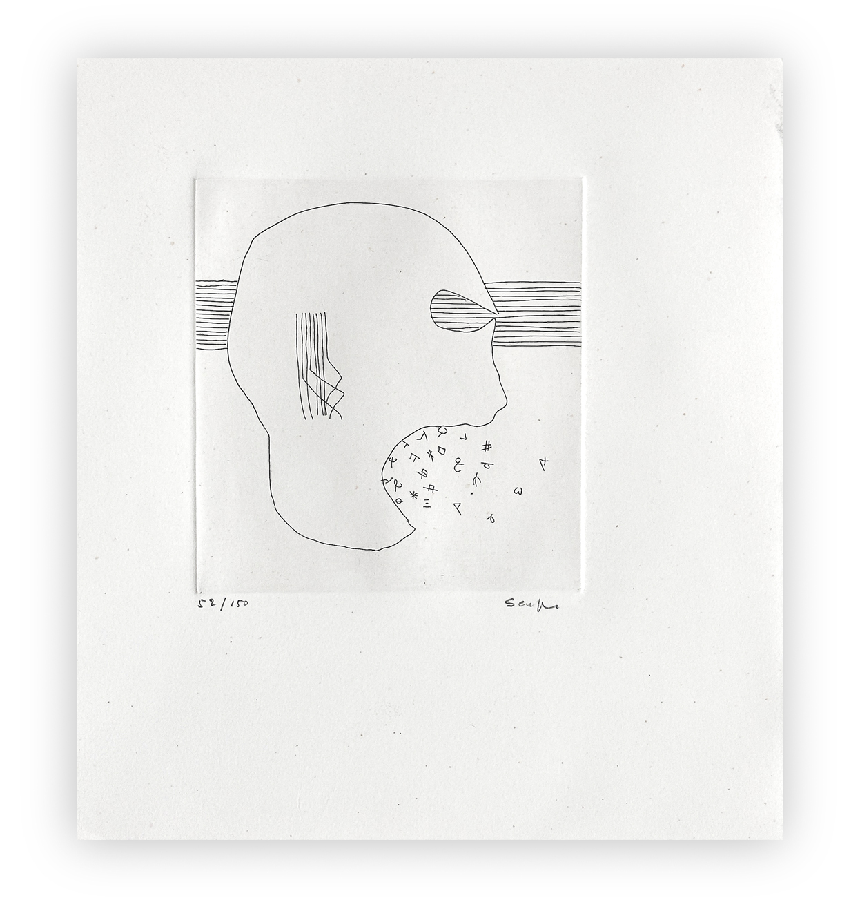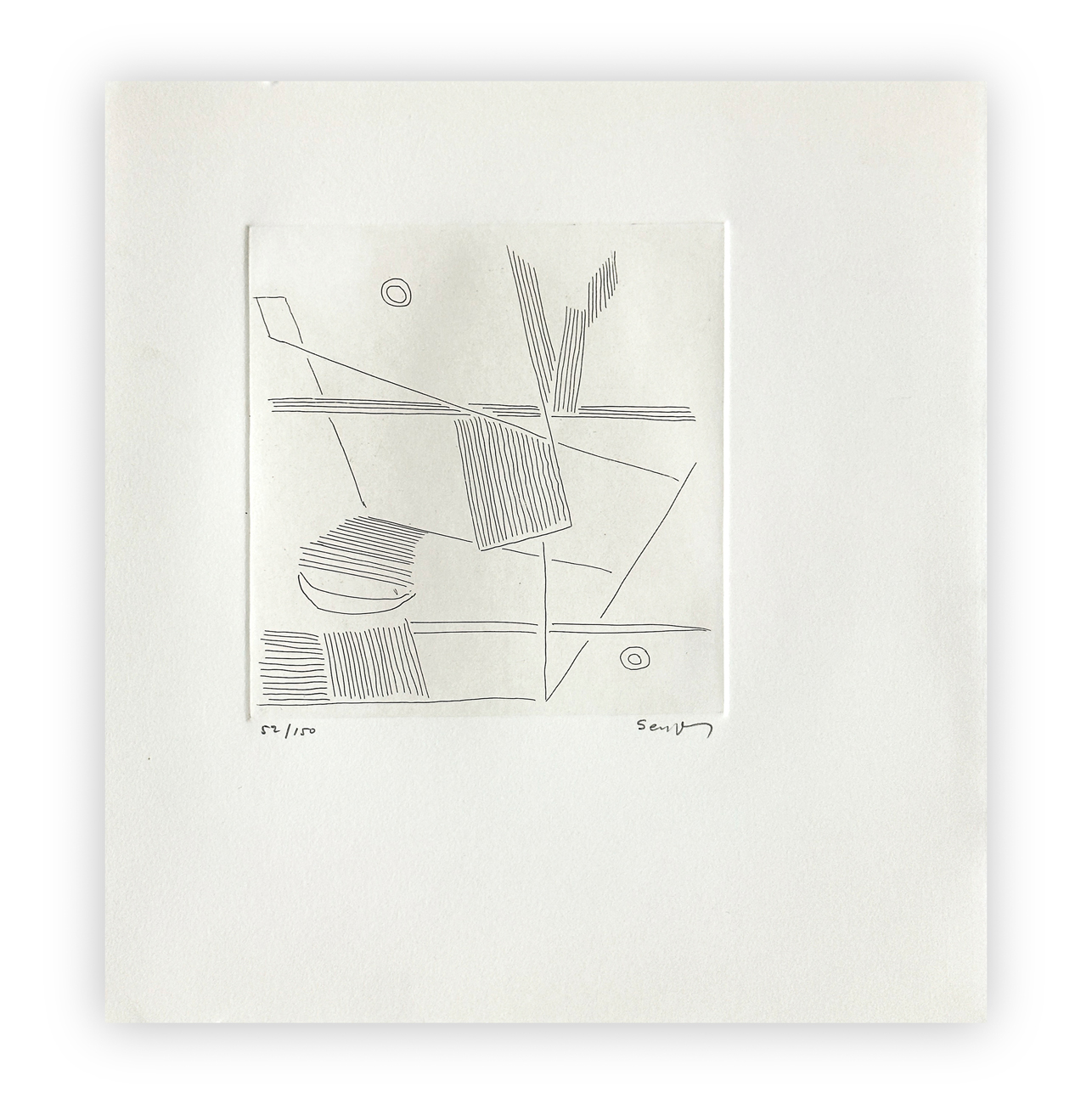 Cartella contenente poesie di Franco Passoni scritte nel 1949 e sei acqueforti di Michel Seuphor incise nel 1972, ciascuna recante firma e numerazione (Esemplari 52/150) a matita al fronte