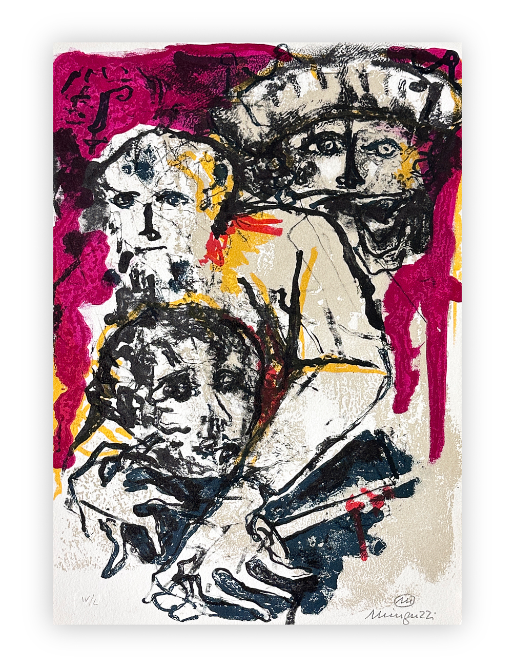 Edizione d'arte contenente 9 litografie: 3 di Pietro Annigoni, 3 di Renato Guttuso e 3 di Luciano Minguzzi, ciascuna recante firma e numerazione (Esemplari IV/L) a matita al fronte e timbro a secco dello Stampatore